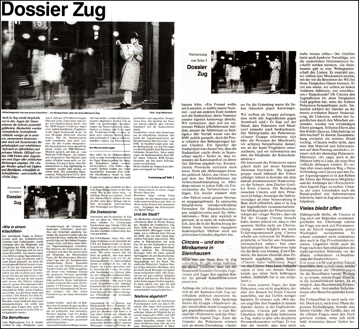 Schliesslich reichte mein in harter Recherchierarbeit erworbener Ruf exakt bis ans linke Ufer des Zürichsees. Dort lebte ein sehr freundlicher Verleger, der einen jungen (und dadurch günstigen) Journalisten suchte, um ihn als Leiter in die Redaktion seiner Wochenzeitung im Kanton Zug zu locken. Da ich seit dem Ende der «Ravine News», die mangels Lesernachwuchses nach nur 3 Ausgaben eingestellt werden musste, als Chefredaktor zu haben war, sagte ich dem freundlichen Verleger sofort zu und siedelte 1988 nach Zug über, wo die Steuern tief und die Mietpreise hoch sind. Dadurch gewann ich jetzt auch noch wertvolle Einblicke in die Vor- und Nachteile des Föderalismus' und lernte überhaupt eine Menge über Politik und höhere Ämterkumulation – wie Sie den Textbeispielen entnehmen können.